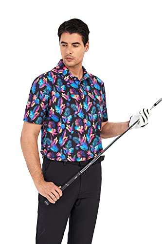 SAMERM Golf Shirts for Men Super Stretch Jacquard Dry Fit Golf Polo Moisture Wicking Short Sleeve Polo Shirts for Men