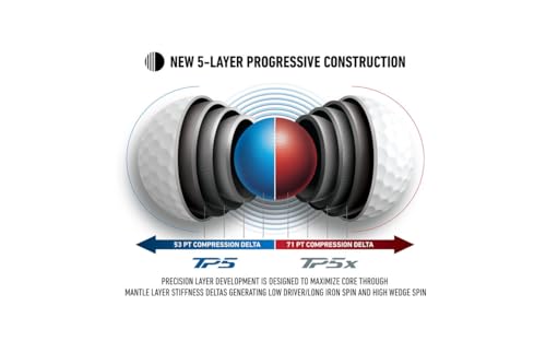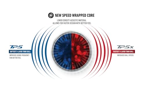 The TP5, the softest 5-layer Tour ball, delivers a notably softer feel and enhanced spin around the green with lower driver spin than previous generations. It is engineered with a new Speed Wrapped Core that delivers a softer sound while promoting a faster, more responsive overall design. For golfers who prioritize touch and feel in their short game, the TP5 provides precision greenside performance.