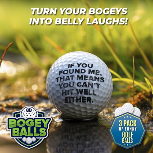 TURN YOUR BOGEYS INTO BELLY LAUGHS! – Bring fun and laughter to the golf course with these hilarious Bogey Balls (3 Pack) from Laughing Smith. Whether it’s you, your buddies or another golfer searching in the rough, this witty little golf ball will make everyone chuckle upon finding it! Hilarious if you’re looking for funny golf balls, novelty golf balls, golf balls funny, funny golf balls for men, golf gifts for men, cool gifts for golfers, or funny golf gifts.