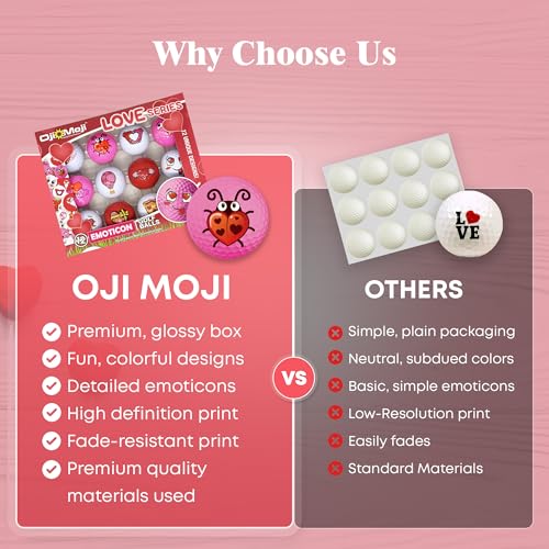 Oji Moji Valentines Golf Balls – Novelty Golf Balls for Valentine’s Day, Anniversary Gift – Silly & Fun Golf Balls for Kids, Men & Women – Unique Love-Themed Designs on Assorted Golfballs – 12-Pack