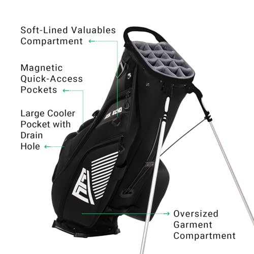 Quality & Storage: Premium fine – grain nylon construction, magnetic pockets for rangefinders and scorecards, and 20% more storage than standard bags