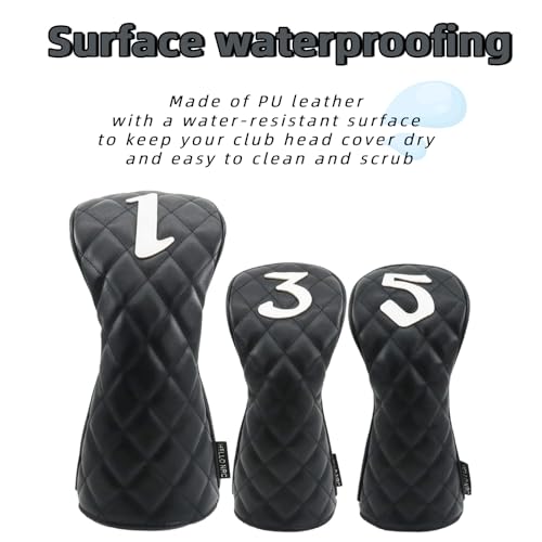Waterproof PU Leather Material: Driver headcover is made of PU leather, exquisite craftsmanship, soft and delicate, and the surface is waterproof, keeping your golf club head covers club covers dry, easy to clean and scrub
