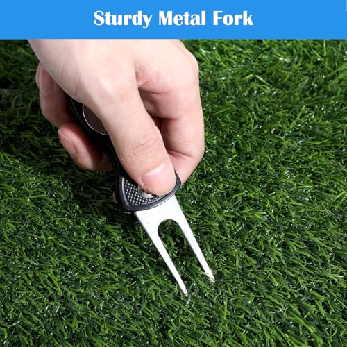 3Pcs Golf Divot Repair Tool with Magnetic Ball Marker, Foldable Pop-up Divot Turf Fork, Ball Marker Divot Turf Fork for Golf Lover