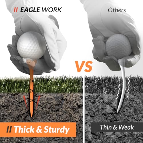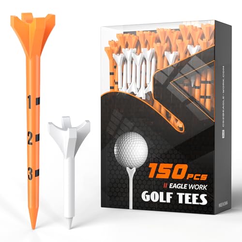 EAGLE WORK golf plastic tees are engineered with a reinforced 4-prong head and an optimized shaft thickness, balancing strength and flexibility to enhance stability and durability. The special low-resistance tips reduce friction between the golf ball and tee, promoting longer drives and minimizing side spin.