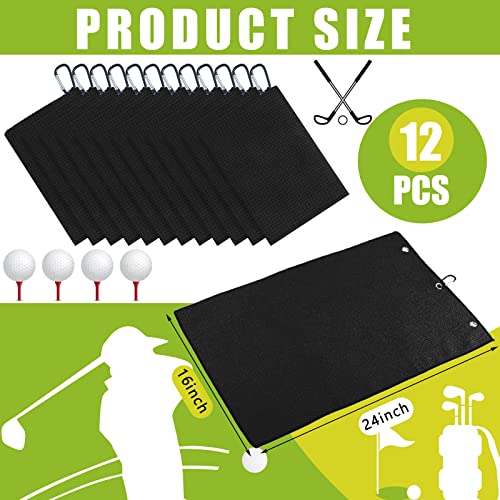 Meanplan 12 Pcs Microfiber Fabric Golf Towel 16 x 23 Inch Tri Fold Towels for Golf Bags with Heavy Duty Clip Waffle Pattern Towel for Men Women Club Gifts