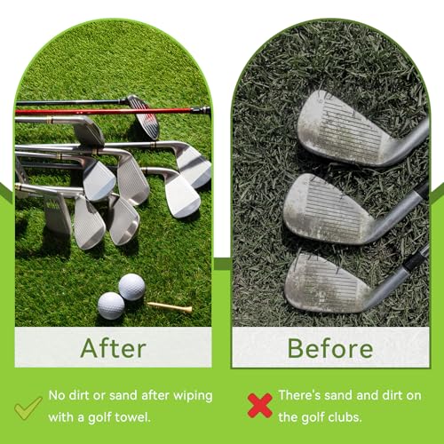 Premium Microfiber Golf Towel: This towel quickly wipes away moisture and dirt from soft and absorbent microfiber, it keeps your clubs, balls, and hands dry for better grip and performance on the course