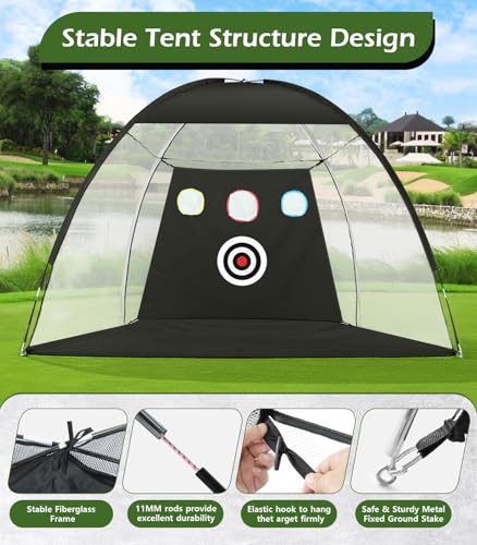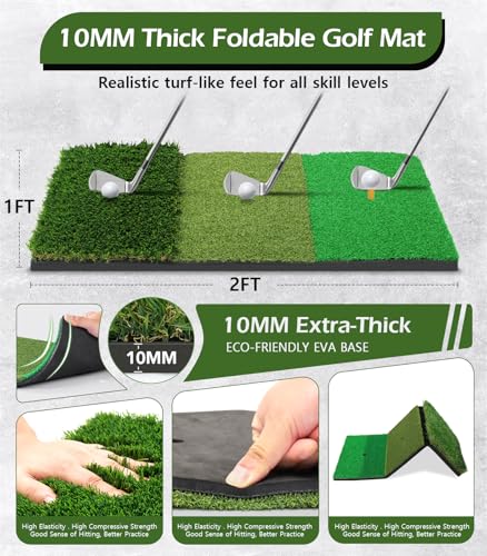 Golf Net, 10x7FT Home Golf Hitting Aids Equipment with Foldable Tri-Turf Mat for Backyard Driving Chipping Swing with Training Target/Balls/Tee for Outdoor Indoor, Gifts for Men Him Dad Boys Golfers