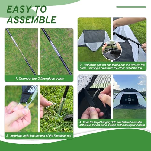 Portable And Easy To Install: This golf nets for backyard is simple to install and easy to carry. It fits easily into the included compact carry bag for easy transport. With a user-friendly design, it takes only 2-5 minutes to set up and take down. Quick to assemble, practice anywhere and focus on perfecting your golf skills!