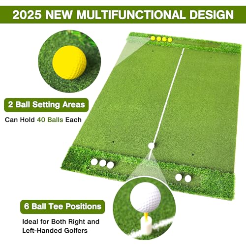 Organized 2 Golf Ball Zone – The golf hitting mats integrated ball trays in the longer grass on both sides. Each tray can store at least 40 balls, allowing you to scoop them out easily with a club for efficient practice, you won’t need to buy extra trays, saving you both space and money
